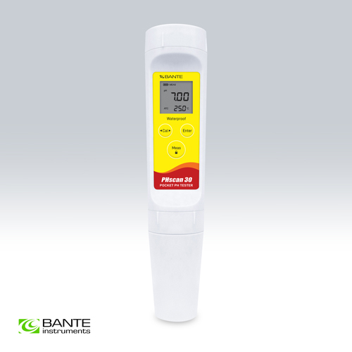 • 高精度笔式pH计, 配有双显示液晶显示屏。