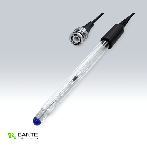 Glass pH electrode, suitable for measuring high temperature solutions.